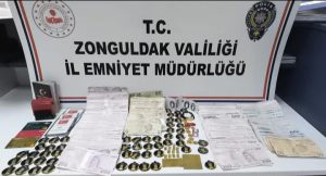 A.S.’nin üzerinden 112.449 TL. nakit para, 2 adet 22 ayar altın, 1 kulpsuz çeyrek altın, 2 adet 1 gram 24 ayar altın, 7 Sahte Çeyrek Altın, çeşitli sahte altın plakaları, 9 boş altın kesesi, 3 cep telefonu, 3 kredi kartı, pasaport, 3 araç ruhsatı ve diğer materyaller.